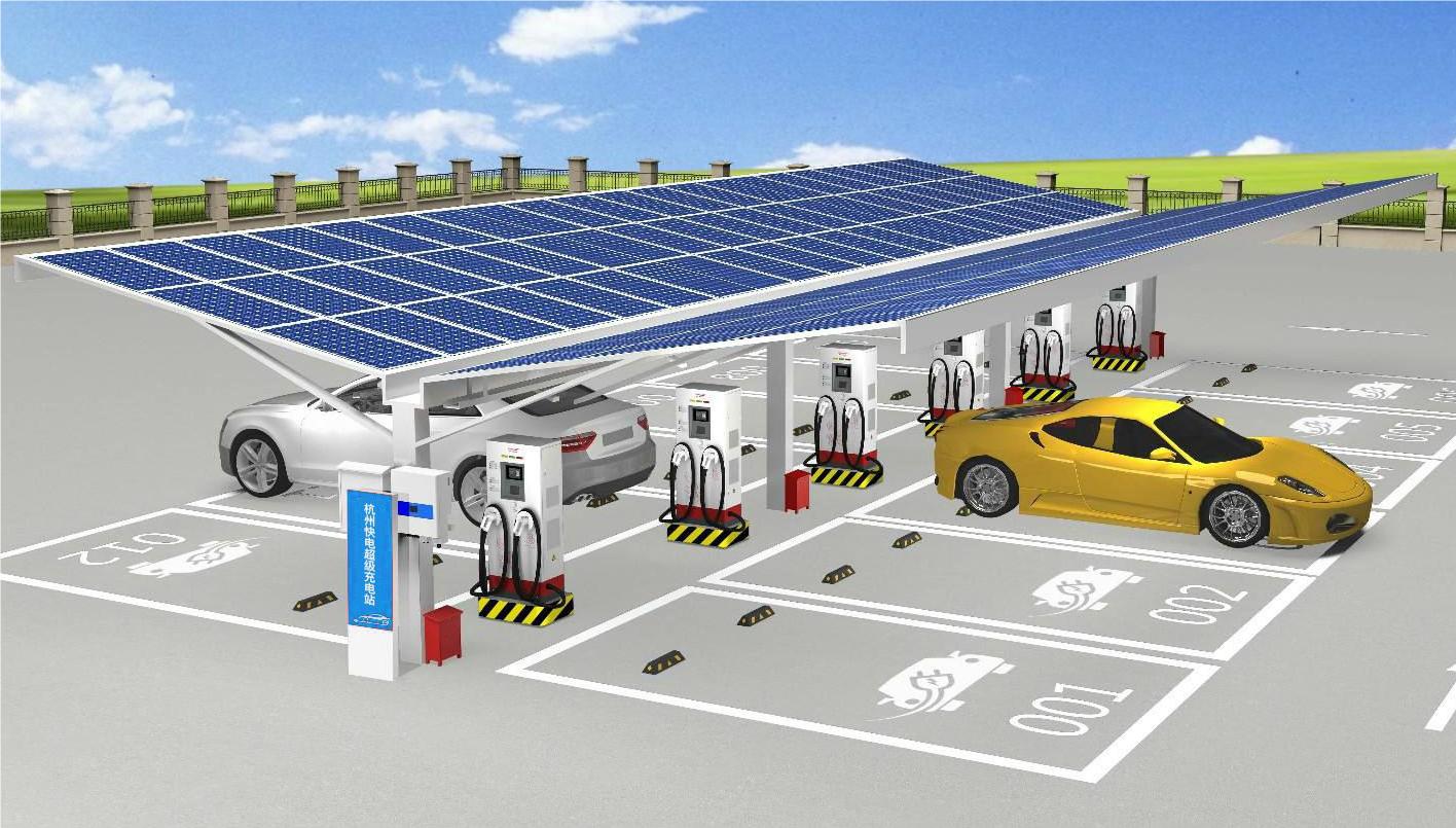 場停車棚頂是利用光伏組件搭建頂棚,建成分布式光伏發電項目